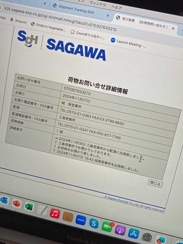 そして今朝には三島市まで来ていて、現在配送の途上、この詳細な追跡には驚きです。