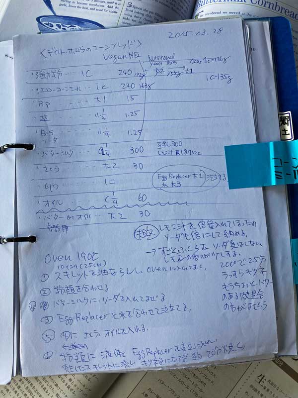 著者はベジタリアンですがビーガンではないので、私風にレシピをビーガンにして、何度作った事か・・・ ファイルの”このページはボロボロです。