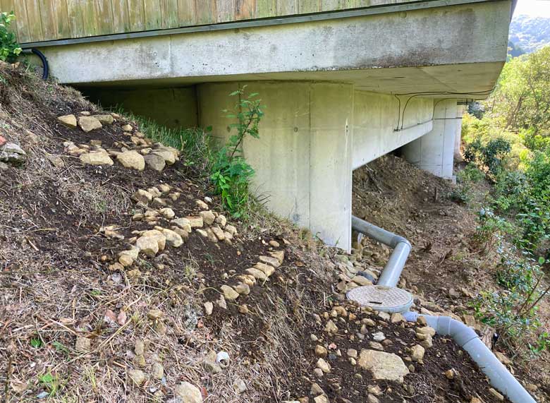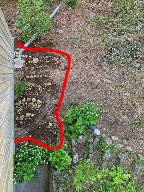 石段も作れないような急勾配で、植木屋さんも「ここには足がかりが必要」と言っていた場所です。