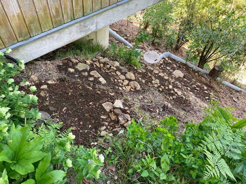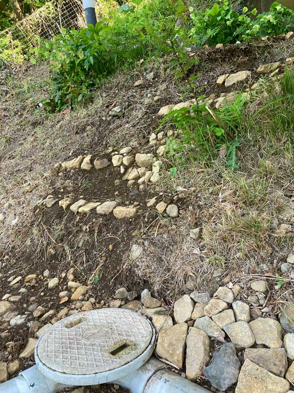 そこで、この家の土台下に沢山ある工事で出た石を運んで、階段もどきを造ってみたのです。