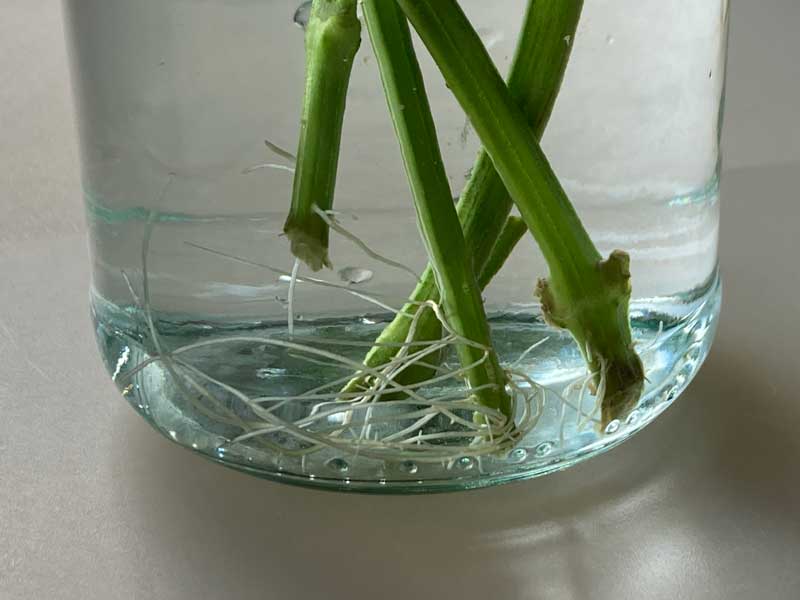 葉は殆ど利用してしまったのですが、一部の茎から根が出て来ました。