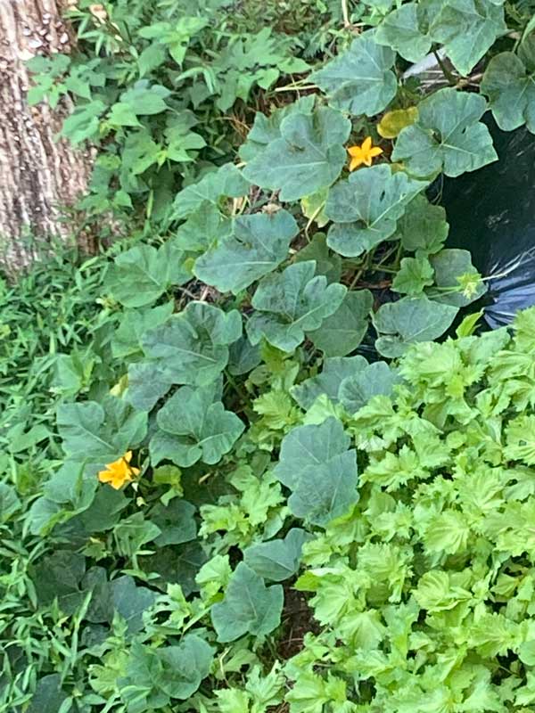 7月10日に苗を定植した島カボチャが、元気に育っています。