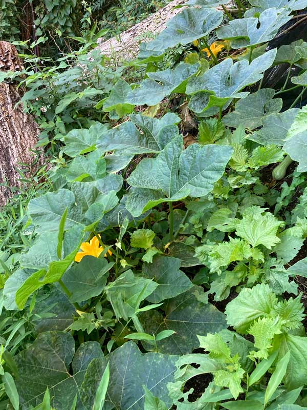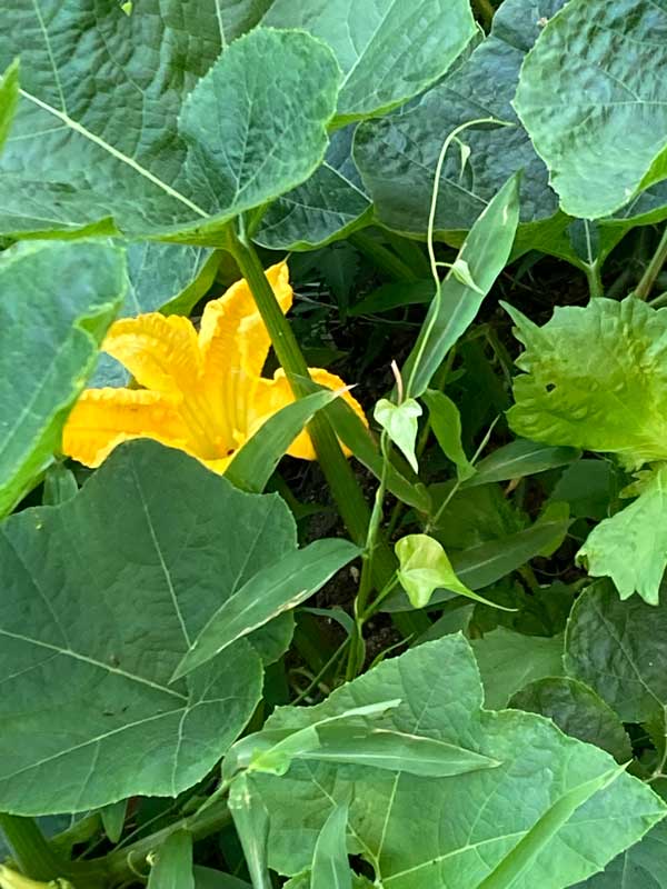 夏至が過ぎて日照時間が少なくなっているので、北斜面の我が崖は南瓜の実が大きくなる前に太陽が当たらなくなってしまうかもしれません。実がなるでしょうか?