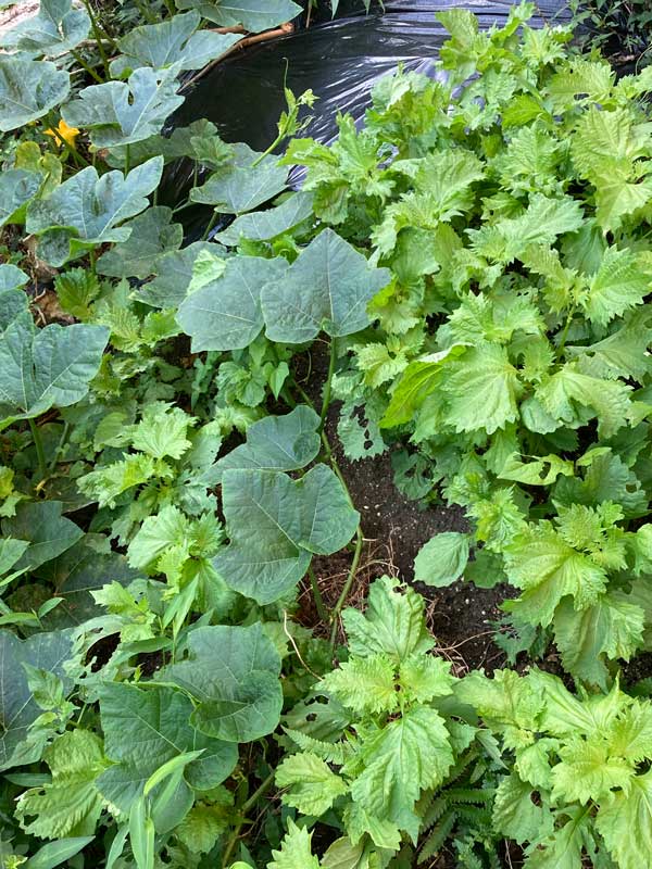 この暑さで大分育って来ましたが・・・北斜面で照射量が少ないせいか、緑色が薄く葉っぱもヒラヒラと薄い。 ~でも柔らかくて食べやすい。