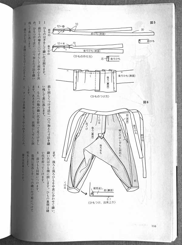 私はこの昔からあるもんぺの裁ち方に感動してしまいました。小幅の反物が生かされ生地に無駄がありません。