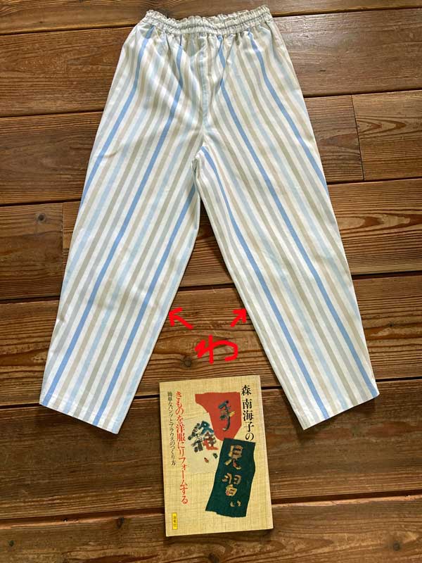「もんぱパンツ」も自由な発想の元、色々な形が掲載されています! その中の内側をわにして裁つ、これを作ってみる事にしました。