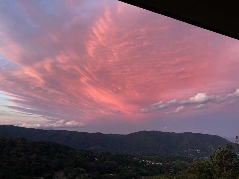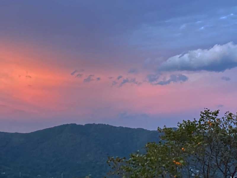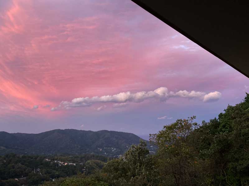 驚きの出会いで時間を忘れた私達、ふと外を見るともう夕方、その時見た空がこの写真です。