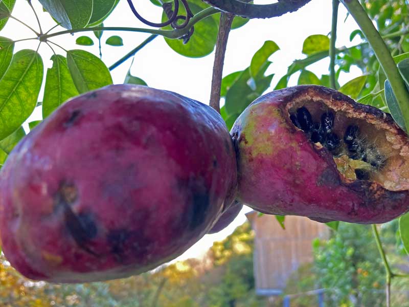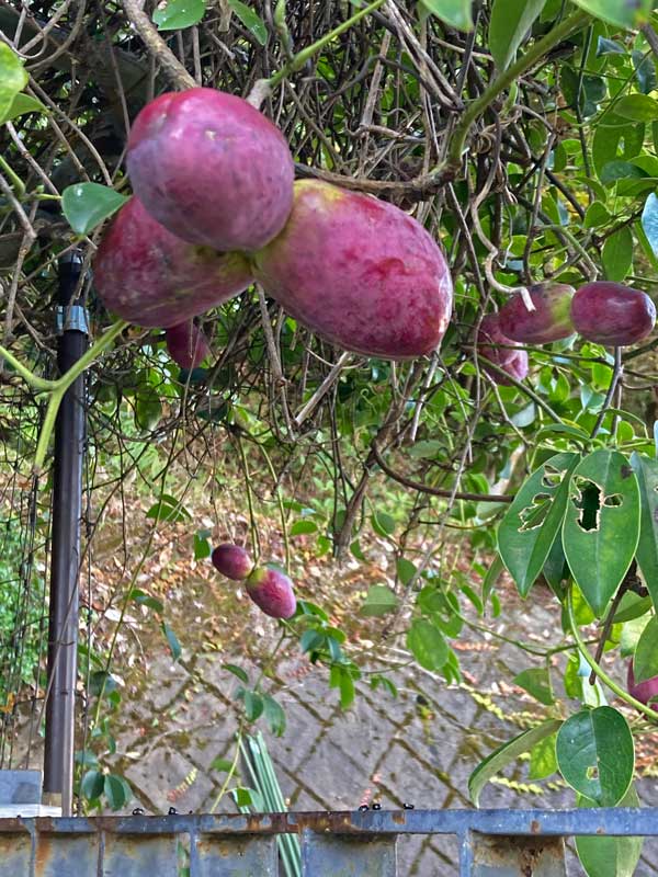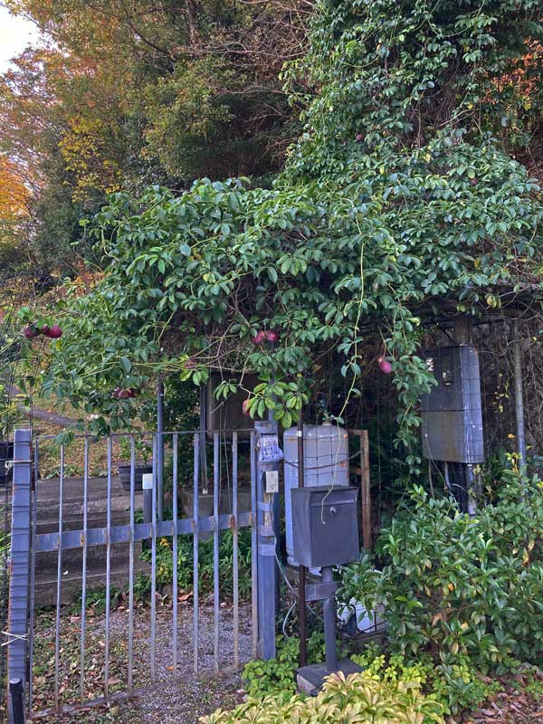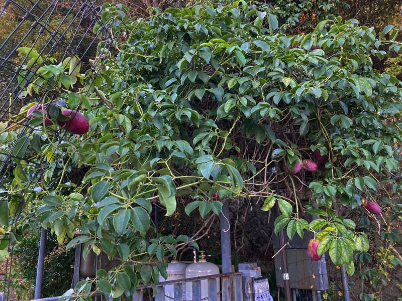 我が家の出入り口に目隠しとして這わせたムベ・・・