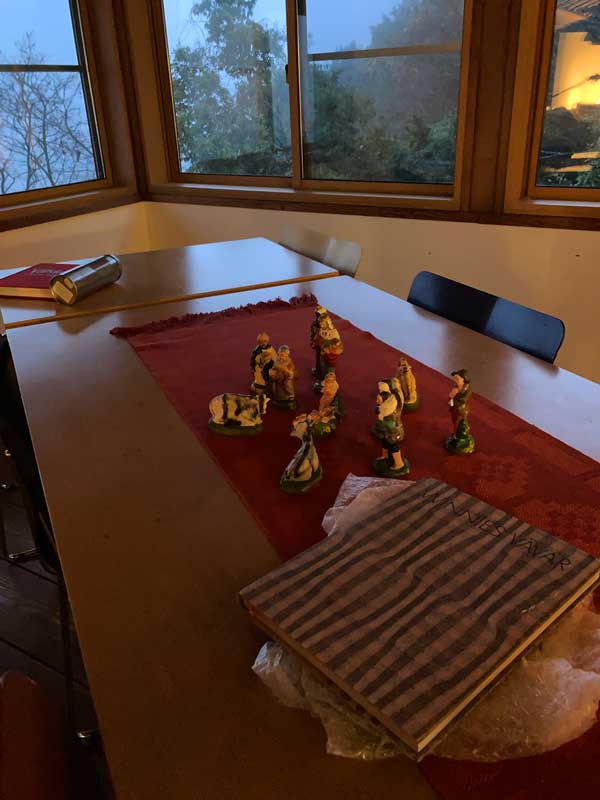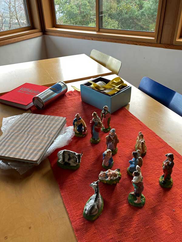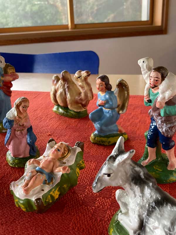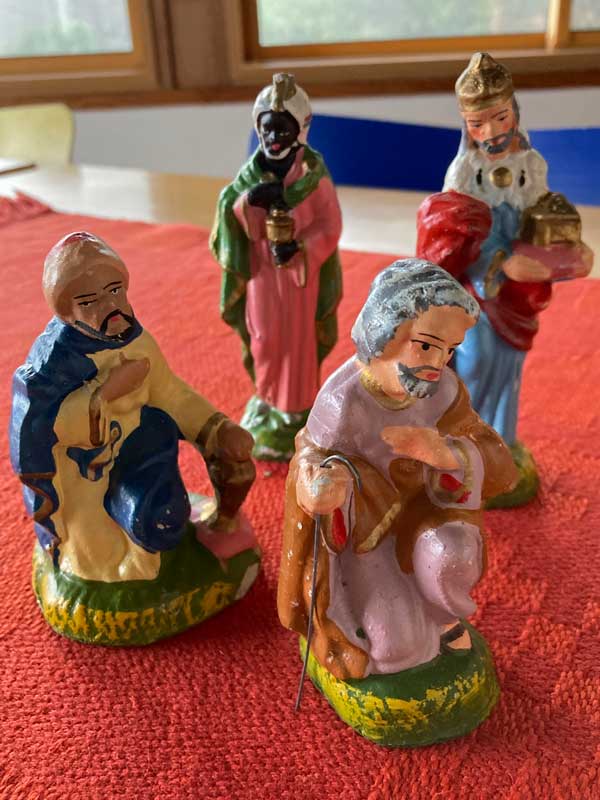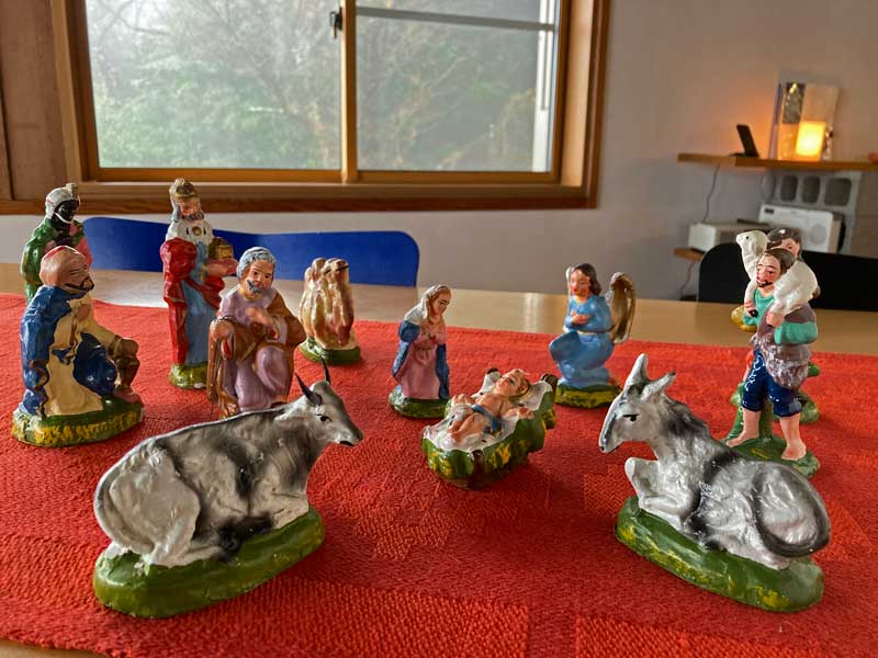 プレゼントを持っている人形は東方の三博士ですが、手前の杖を持っている人形が誰なのか分からないでいました。スマホでAIに質問したら「イエスの養父ヨセフ」と教えてくれました。