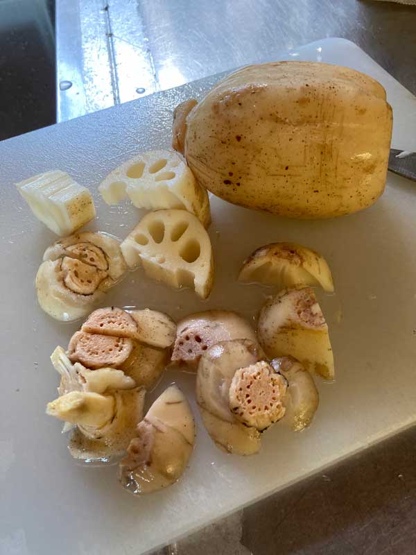 蓮根は節や皮に滋養があるので、こんな風に洗ってから、全て使います。