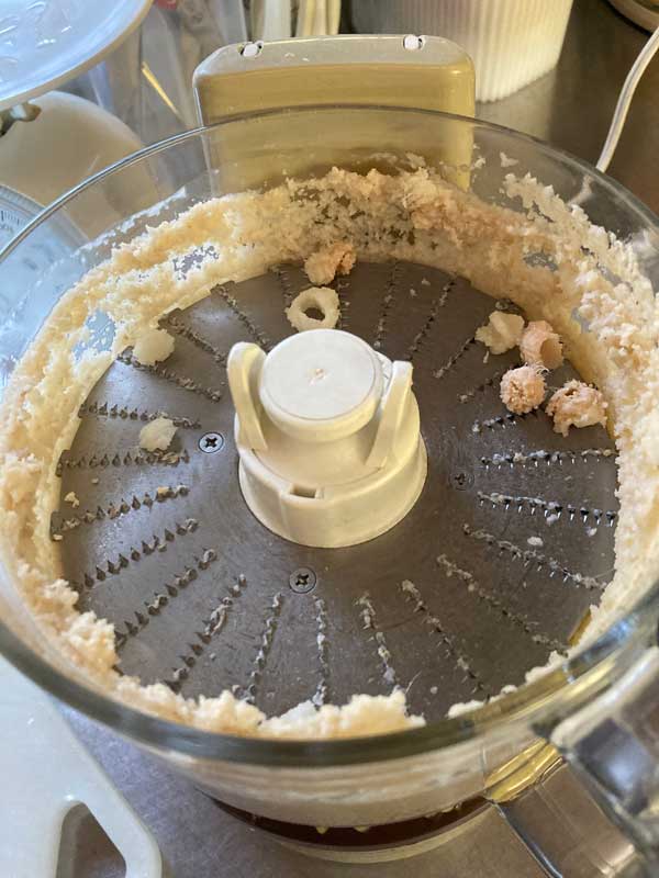 大まかに切って、すりおろし機能のアタッチメントをつけたフードプロセッサーに入れます。