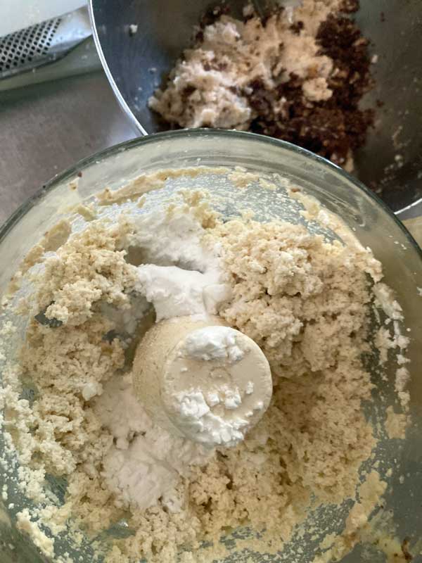 水切り豆腐を適当に切り、普通のブレイドのフードプロセッサーでザッとつぶし・・・