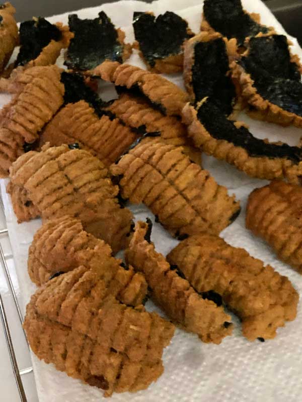 カラっと揚がったら油きりに取り出し・・・