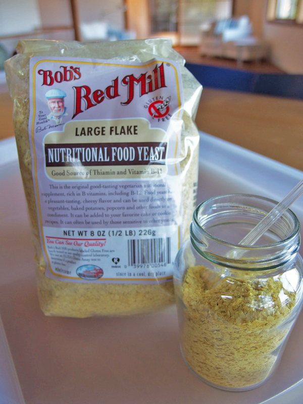 ベジタリアンの、それもVegan(ビーガン)に近い私は、Nutritional Yeast (ニュートリショナル・イースト)という旨味のあるチーズ味のフレークを、今はパルメザンチーズの代わりにかけて食べています。 これがなかなか美味しくて、ベジタリアンでないMさんも気に入ってかけて食べているくらいなのです。