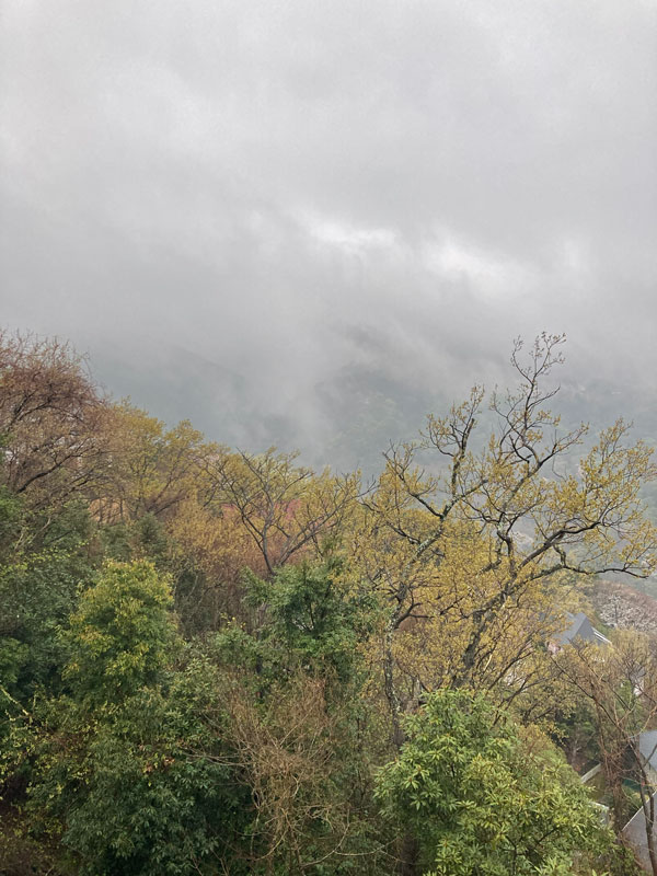 山も木々も雨から生命力を吸い込んでいるよう、静かですが命を感じる景色。