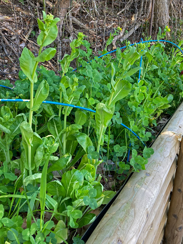 小松菜が伸びて、花が咲き始めています。