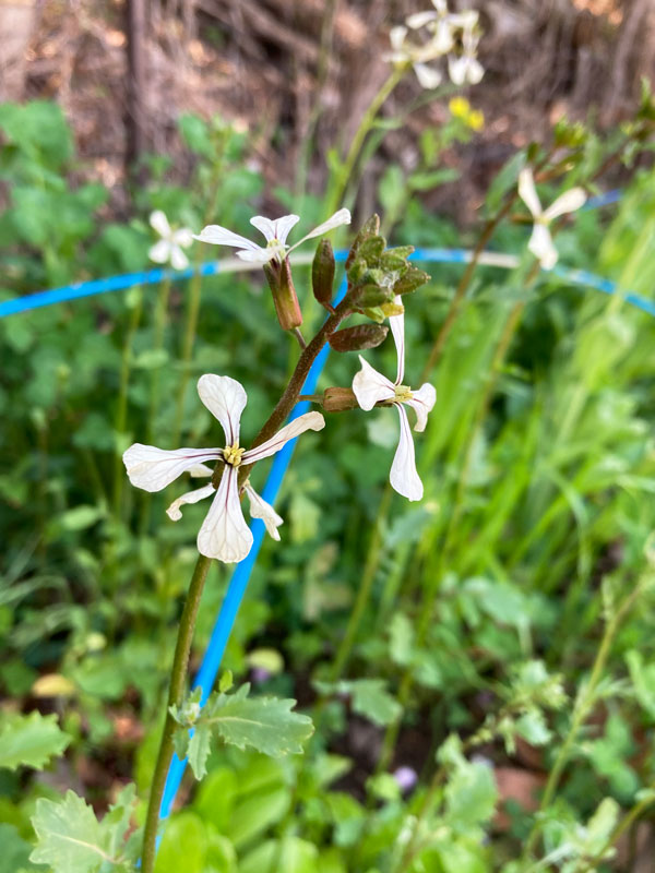 ルッコラの白い花、これも2~3回摘んで食べたたでけ。