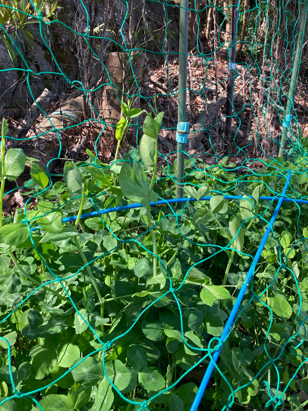スナップエンドウが伸びて来たので、ネットを張りました。