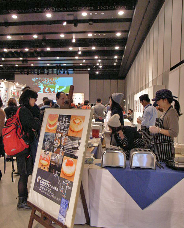 会場内に、登壇者の一人巌真一宏さんが作った志賀高原横手山山頂のクランペット・カフェがの出張店が。