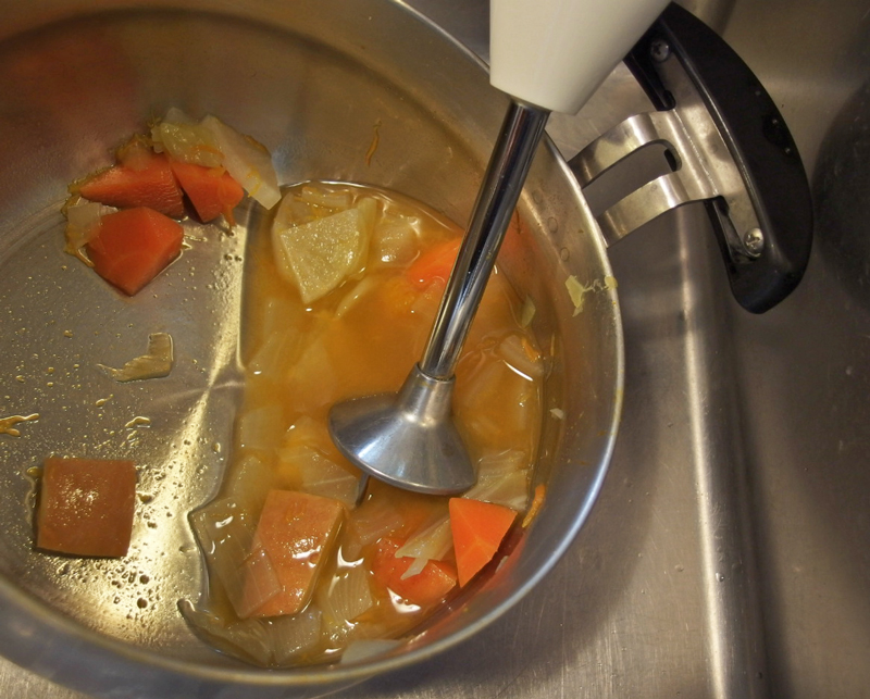 新しく作った「甘い野菜のスープ」と混ぜて、ポタージュベースの野菜スープにするのも美味しいです。