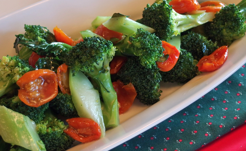 ブロッコリーの緑とセミドライトマトの赤、クリスマスカラーのマリネサラダ。この夏作っておいた自家製の セミドライトマトのオイル漬け を使いました。