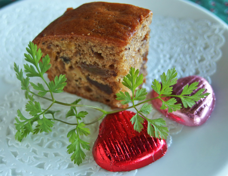 デザートは以前焼いて冷凍しておいたフルーツケーキと、People Tree のハートのチョコレート。