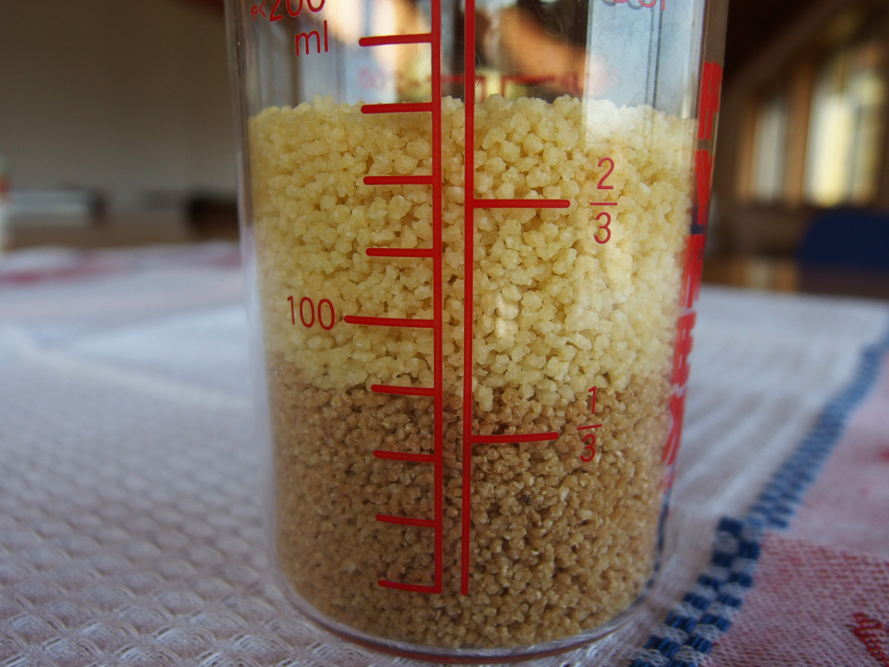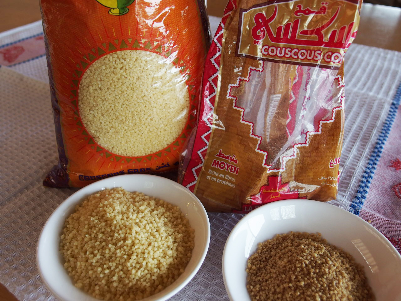 チェニジアのクスクス、左が大粒、右が全粒粉の中粒です