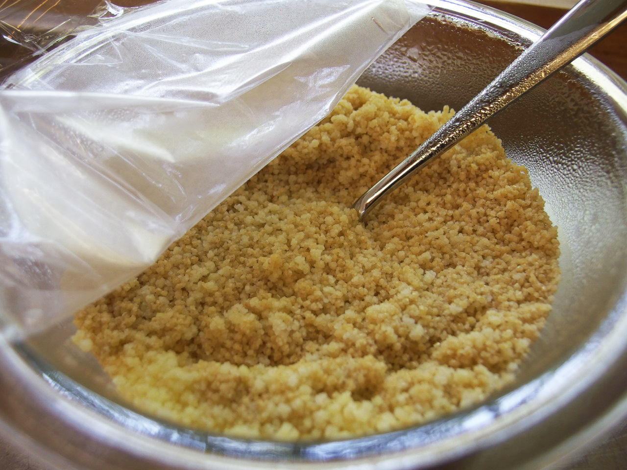 クスクスはお湯をかけて蒸らすだけで直ぐ食べられるので、とても便利です