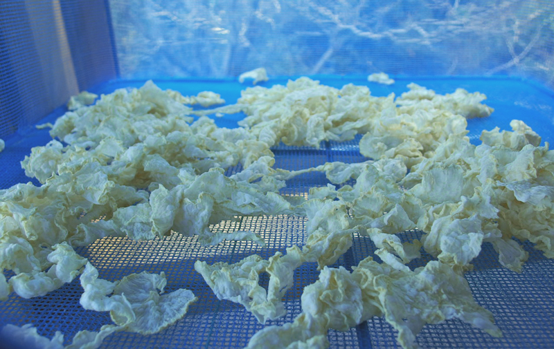 1本の大根が干すとこのくらいになってしまいます。今回は1本の大根が約120gの切り干し大根になりました。