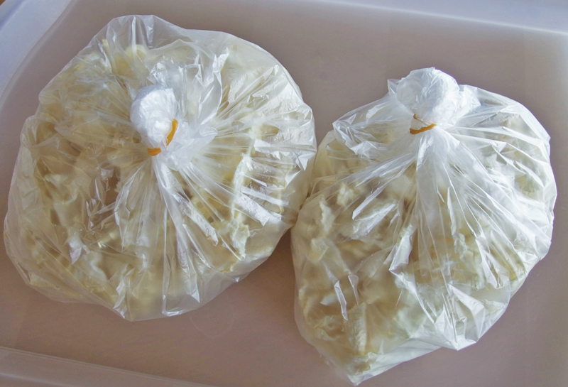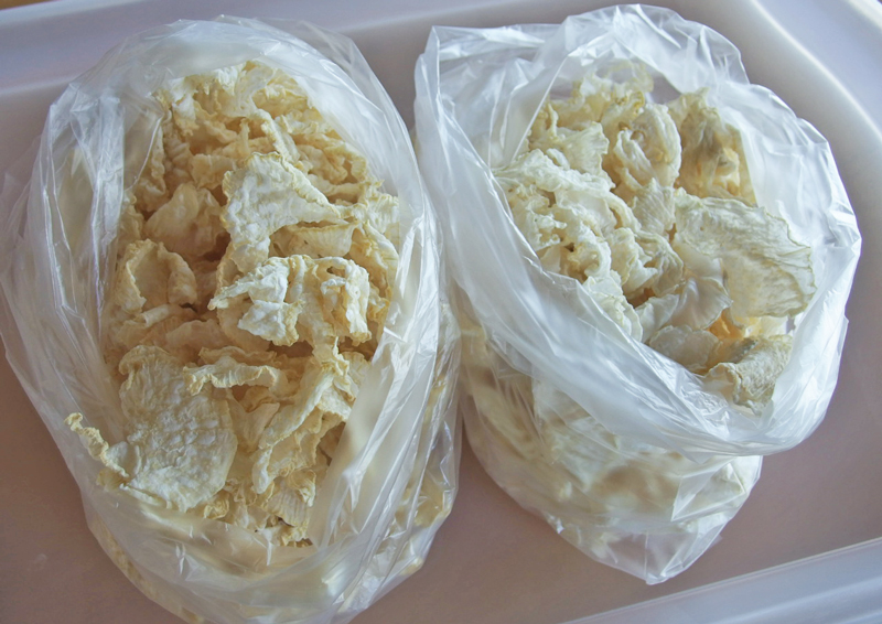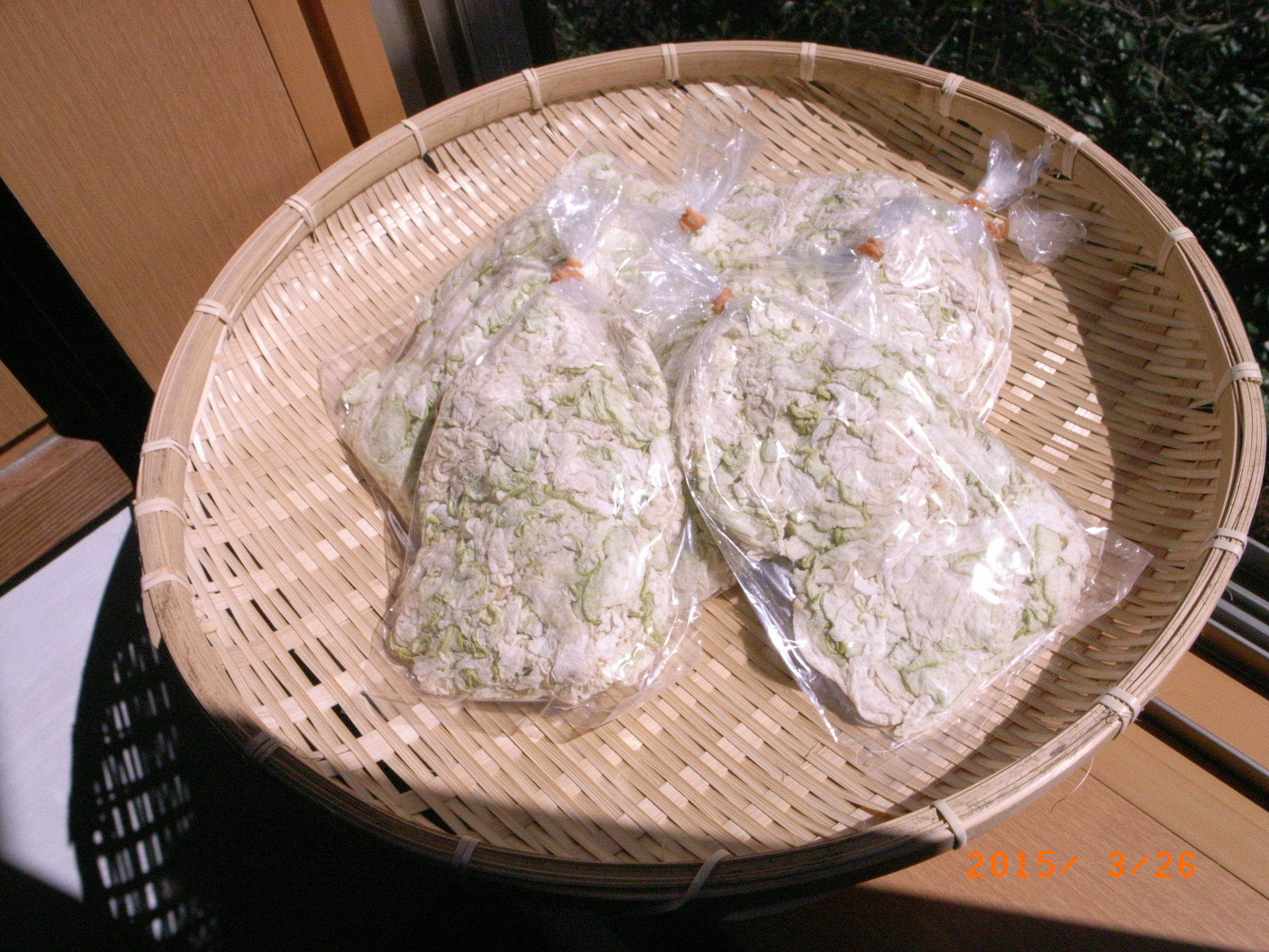 それを小さなポリ袋に空気を抜くようにして口を閉じます。切り干し大根は時間が過ぎると茶色くるので、私は冷凍保存しているのですが、このようにパックしておくとかさばらず便利です☆ 未だここまで出来ていないので、ここだけ昨年の写真です。