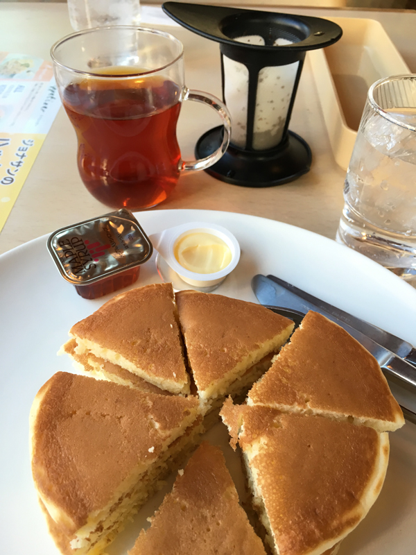 Mさんは免許更新に診断書が必要だったのでもう一度伊東警察署へ、私はジョナサンで紅茶とパンケーキのお茶。パンケーキが大きかったので運転免許更新を済ませたMさんにも食べてもらいました。