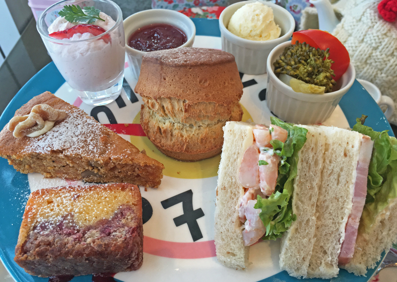 サンドイッチのエビとハムを除いて、添えられていた野菜のピクルスをはさんで食べてみました。スコーンにクロッテドクリーム☆でもジャムがラズベリーだったら・・・ 家庭的なケーキも物足りない味・・・ 人が用意してくれたお茶とお菓子をいただきながら、私は何だか満たされない気持ちでした。