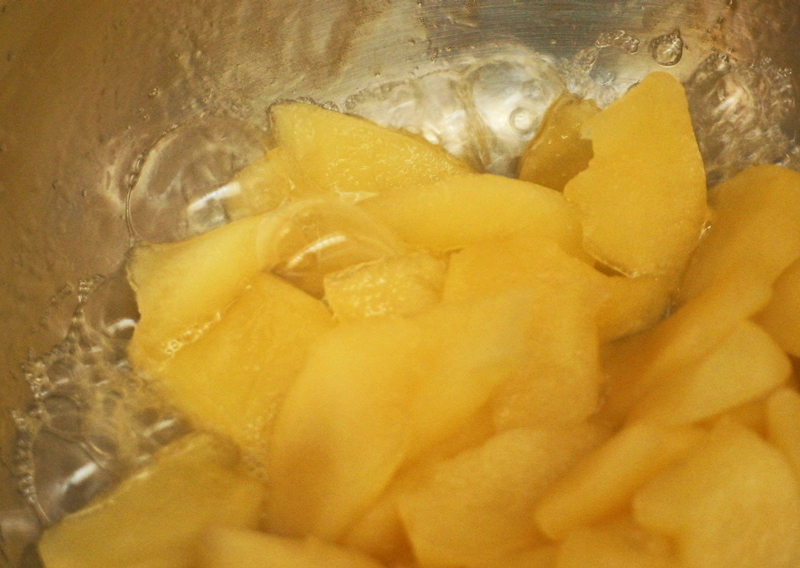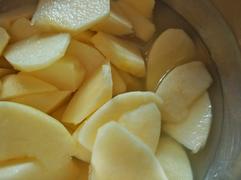 水かリンゴジュースをヒタヒタより少なめに入れます。
