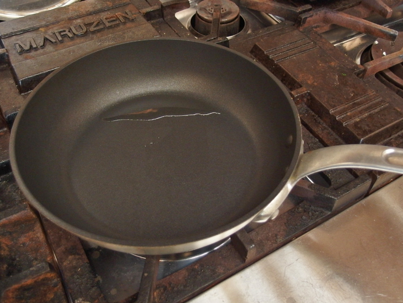 直径26センチ前後のフライパンに油少々を入れ火にかけ熱くしておきます。
