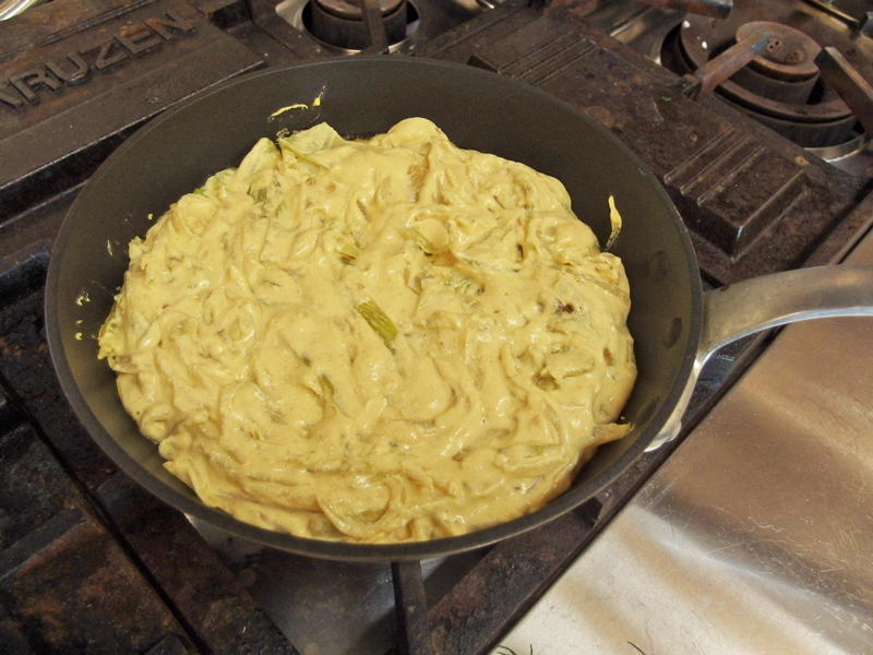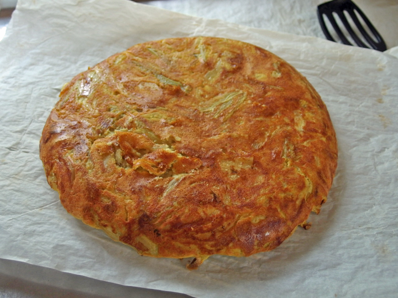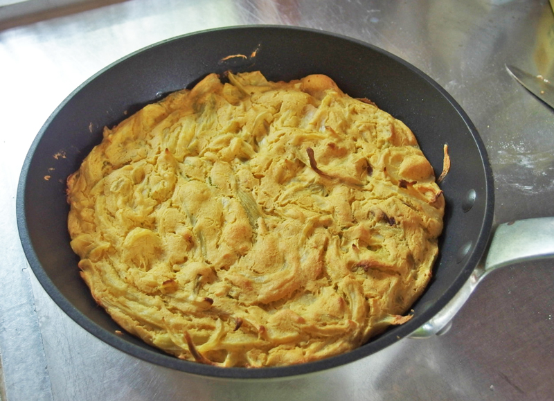 前回はスペイン風オムレツの中身の作り方でした。今回は卵代わりのタネの作り方から焼くまでのステップをご紹介します。