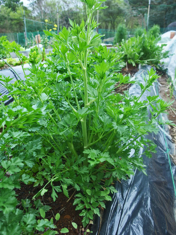 ほんの少し使うだけで、洋風の野菜料理やスープが香りや味がイキイキとする素晴らしい調味料で、切らした事のない私の料理の必需品です。なので昨年このブログをスタートして直ぐに作り方の写真を撮ったのですが、沢山使うイタリアンパセリの旬を過ぎていたので保留にしていました。昨日菜園へ行ってビックリ、イタリアンパセリのトウが立ち始めているではないですか。