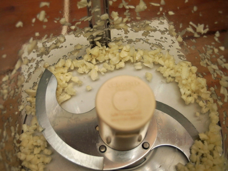 先ずニンニクをフードプロセッサーにかけ、