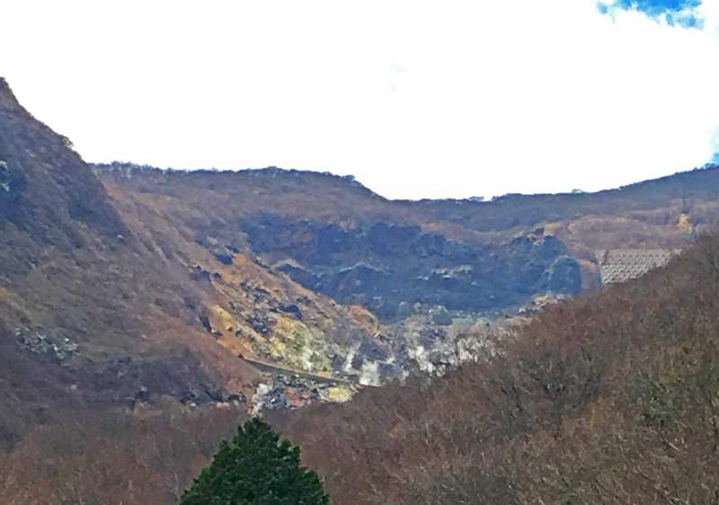 今月訪れた箱根、火山活動の影響で大脇谷は立ち入り禁止でした。遠くから見ると谷には蒸気のようなものが出ていました。