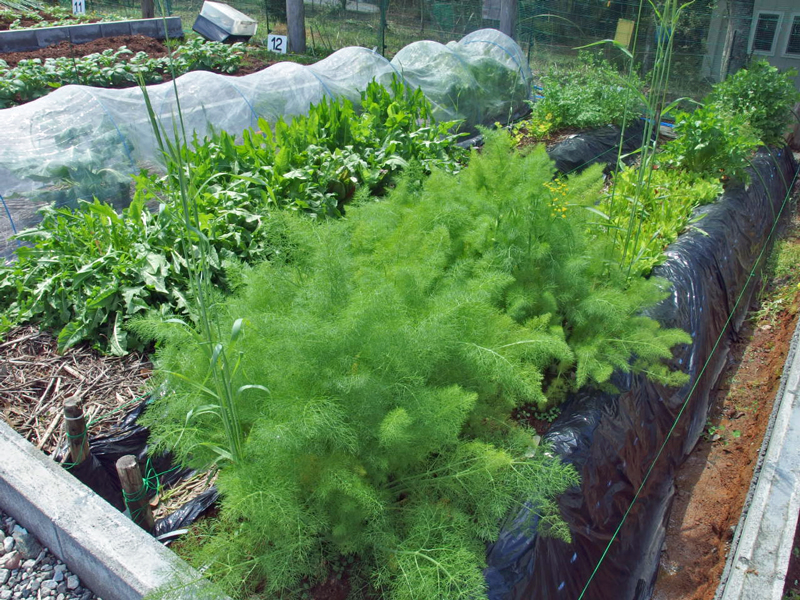 山の上の貸農園の畑の、冬を越したハーブもグングン大きくなっています。