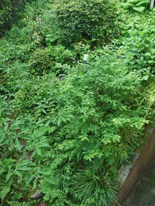 緑、緑、緑、、、 家の窓から見る向かいの山の緑は日ごとに濃くなり、成長する木々の勢いと一緒に山が膨らんで来るような感じです。ダイニングの窓の下のコナラや山椒の木もあっという間に葉を茂らせて、勝手口から下に降りる小道が見えなくなってしまいました。