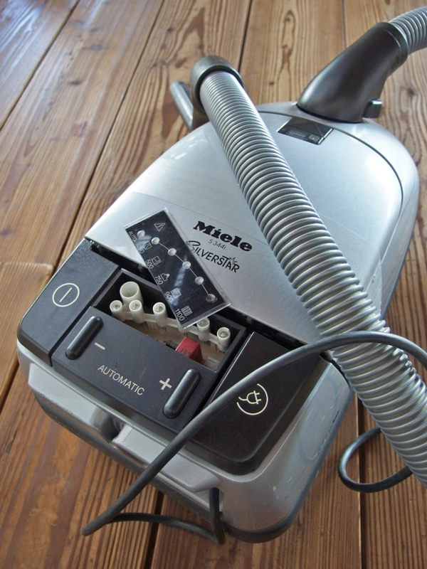 虫の退治に使うのはこれです。掃除機のノズルの先に特別に用意した延長ノズルを付けて高いところの虫も吸い取ってしまいます。それでも届かない所は脚立に乗って行います。先日キアシドクガを退治していたら、フラッとして足を踏み外し掃除機と一緒に転んでしまいました。御覧のように掃除機がちょっと壊れて、私も捻挫してしまいました。