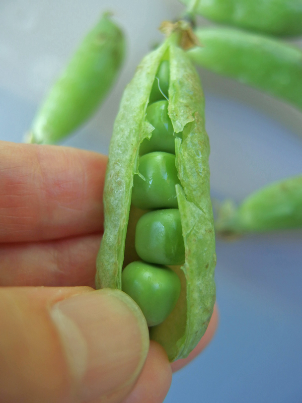 収穫しそこなって大きくなったスナップエンドウから、可愛いえんどう豆、グリーンピースが出てきたのです。