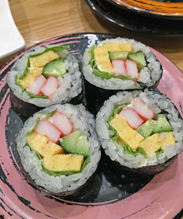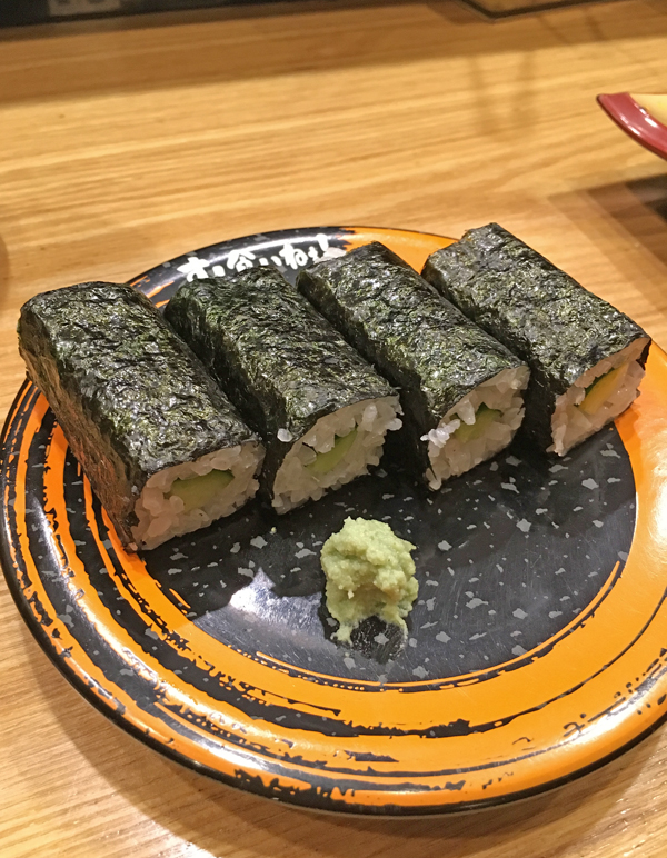 美味しい魚目当てでない私のようなベジタリアンは、より庶民的な回転寿司の方が気楽な気がします。でも旅先でベジタリアンのお店を探すのは大変です。回転寿司なら何処にでもあるし、ベジタリアンでない人と一緒に食べられるので、貴重な存在です☆