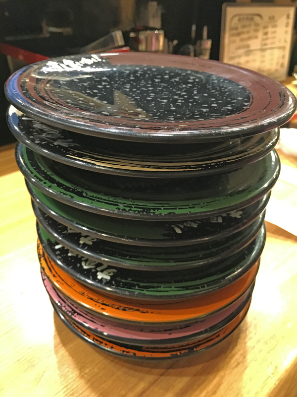 お会計はお皿の色と数で計算されます。