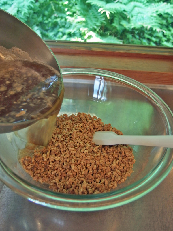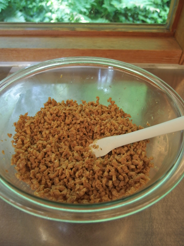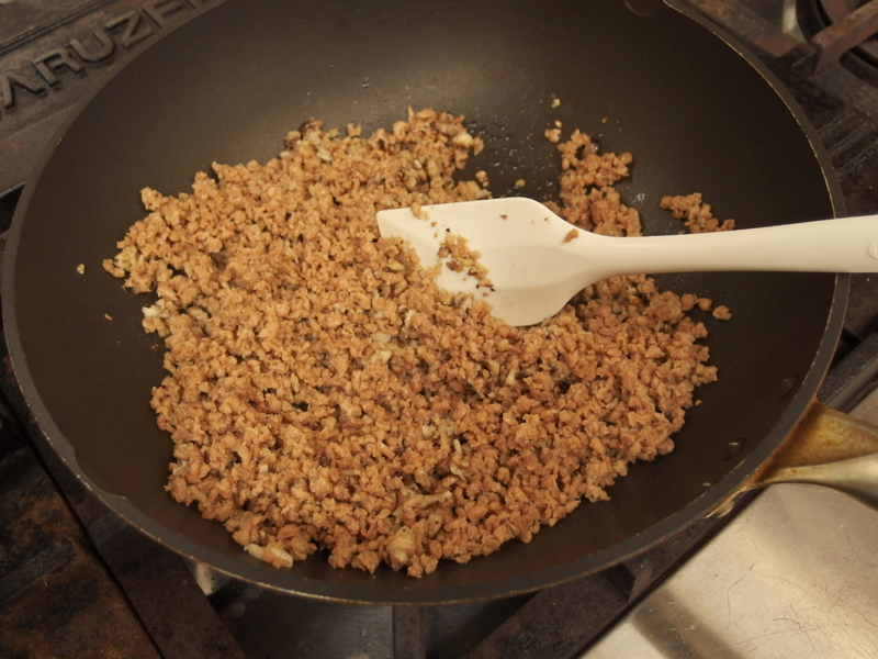 3分後には大豆ミートが水分を吸ってひき肉のようになります☆
