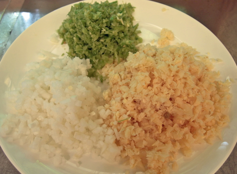 前回お話したご飯のレタス包み に入れる、中華風の具の作り方をご紹介します。「コウ・ズ・スゥン」というお料理で本来は鳩や鶉で作るものらしいです。私はベジタリアンになる前は鶏のひき肉で、今は大豆ミートのミンチタイプを使って作っています。