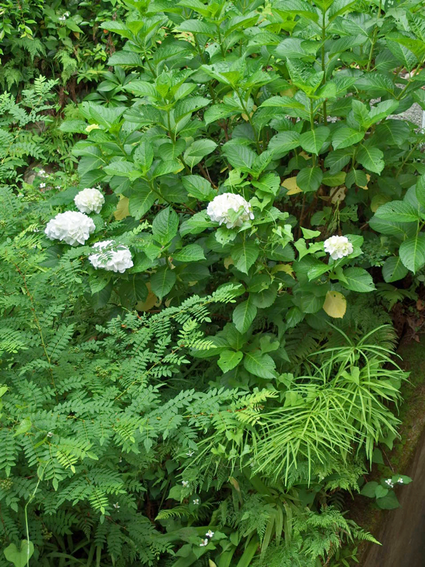 自然も日々の暮らしもドンドン変化する今日この頃。 朝起きて今日の予定を考える前に、今日しなければならない事が向こうから飛びこんでくる、それを片付けているともう夕方、そんな毎日が続いています。今朝ダイニングの窓から外を見ると真っ白な紫陽花が咲いていました。
