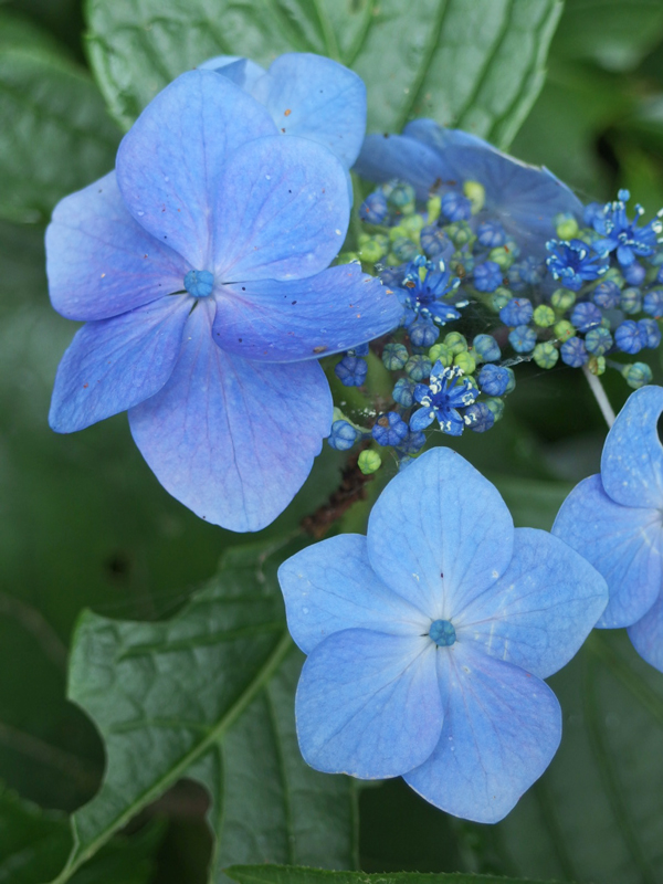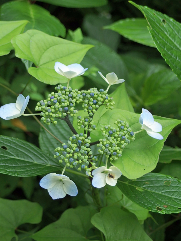 どんよりした梅雨空の元で咲く、青みがかった白い花の爽やかさ・・・