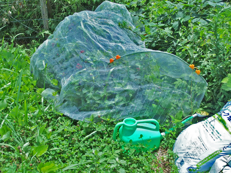 先週の日曜日、選挙の帰りに下の畑に久し振りに行きました。体調がよくなったMさんが時間があれば畑へ行って世話をしているので、夏野菜が元気に大きくなっていました。畑の隅にあるブラックベリーにも丁寧にネットがかけてありました。