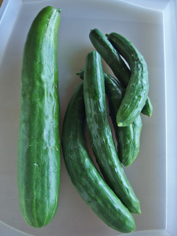 右側の調度よい大きさの胡瓜が、一晩で左側の大きさになってしまいます。右側は1本150g、大きくなったのは600gもあります。一晩で4倍です☆ マクロビオティックでは陰性の野菜は大きくなるのが早く、陽性の野菜は遅いと習いましたが、胡瓜が陰性なのに納得です。だから体を冷やす、熱い時に美味しいし、日焼けに胡瓜のパックなのです。